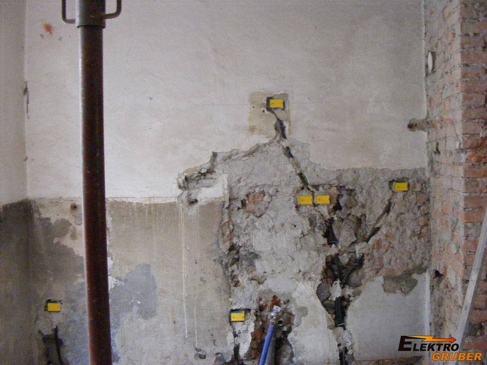 - Bestehenden Aufputz-Installation in den Gängen unter Putz verlegt